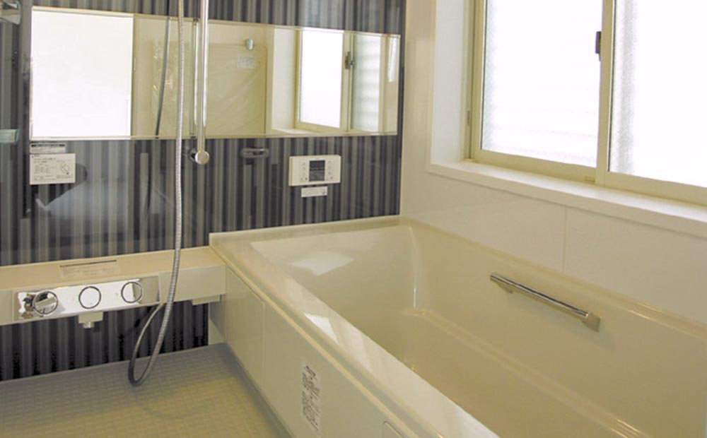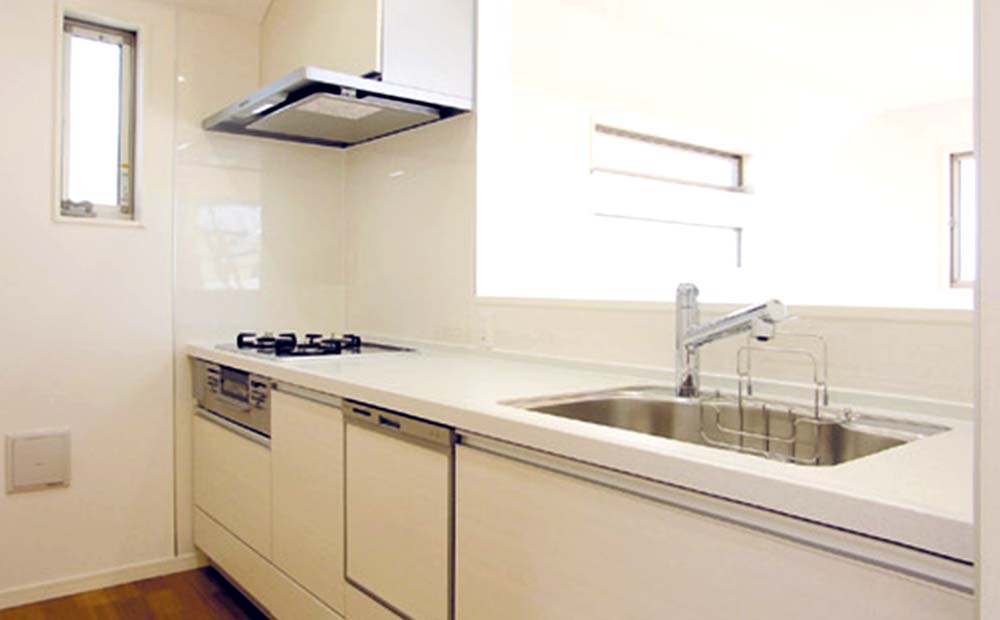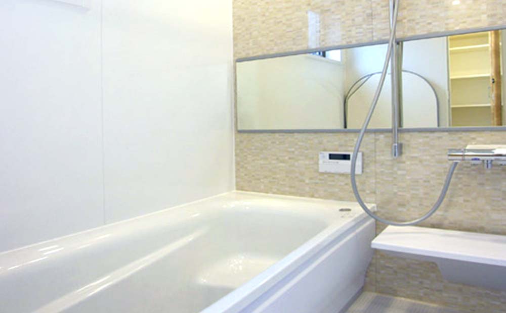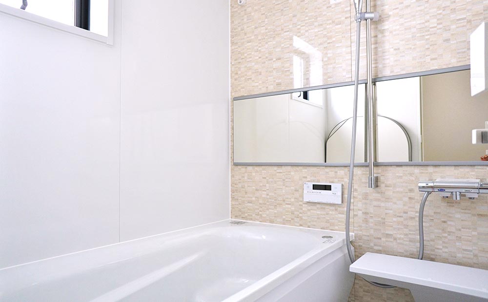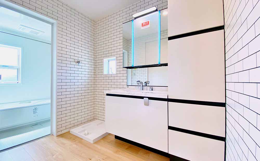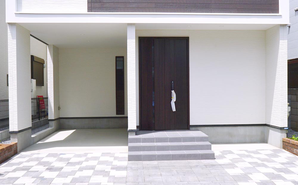 外観は白を基調としたシンプルで上品な邸宅です。アクセントタイルにも白を使いましたが、同じ白でも質感を変えることで表情に変化が生まれています。
